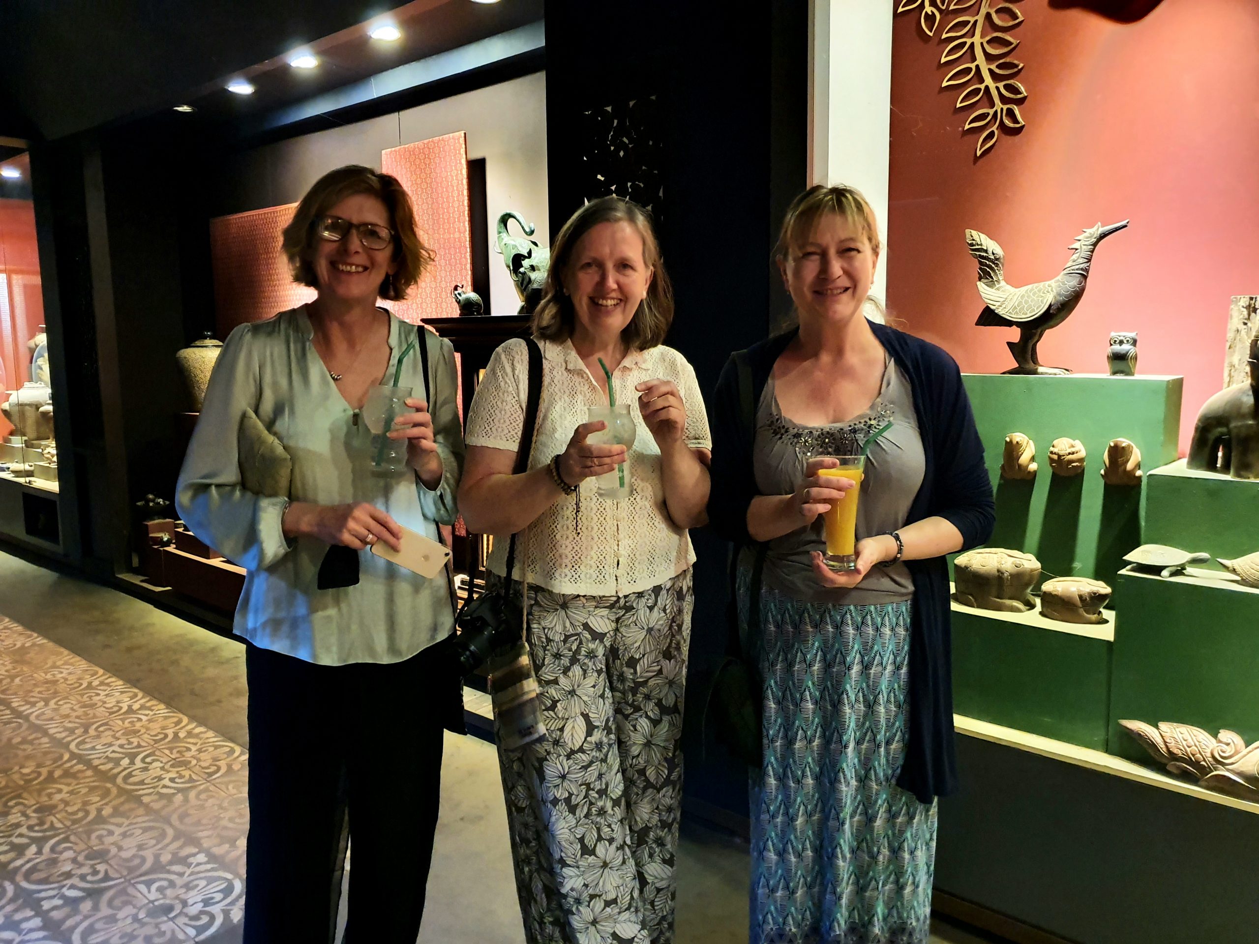 The guests coming with Taste Siem Reap are enjoying their visit at our gallery. Taste Siem Reap takes visitors on a journey to some of the best galleries, restaurants and bars in town. With most tourists coming to Siem Reap for only 3 nights and so many amazing places to try, it’s often hard to pack it all in. With Taste Siem Reap, you will visit 3 to 4 of Siem Reap’s most interesting art, dining and drinking establishments in one evening. Theam’s House is featured as the first stop on the Taste Art & Cocktails tour and guests can enjoy a private tour of our galleries, accompanied by a G&T or juice.