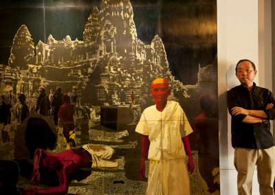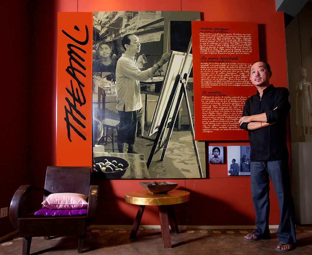 Amidst the widespread famine and the trauma caused by the genocide, hundreds of thousands of Cambodians fled the country. Theam’s family was among the refugees who arrived in France in 1980. After receiving a sound artistic and technical education in the Fine Art School and in design at the Ecole Boulle, both in Paris, Theam returned to his native country to take part in the rebuilding of a country ravaged by decades of war.